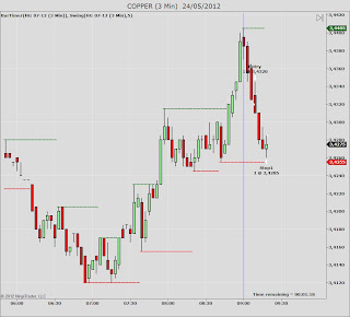 El futuro Copper mas de lo mismo, entre unos ticks tarde por esperar a buscar largos, una vez dentro y para evitar exactamente lo mismo que en los otros dos me posicione en +7 ticks, hoy era día de conformarse, no me apetecía arriesgar ningún trade, y entrego estos +7 ticks.